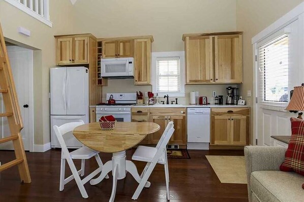 Inside this cozy country cottage you will find all of the amenities of the larger homes in our quaint beach community. The kitchen is fully equipped with a gas range, dishwasher and large refrigerator. The Ninja coffee bar allows you to make lattes’ and other special coffee drinks as well as regular coffee. In addition to the Belgian waffle maker and slow cooker, you will find the normal kitchen appliances like toaster, blender and mixer. There is a Weber gas BBQ on the porch. But if you don’t want to cook there are restaurants within walking distance right in Seabrook and others in the area.