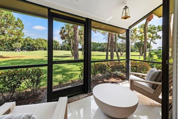 - Screened in lanai with direct views of the Fazio Golf Course at PGA National