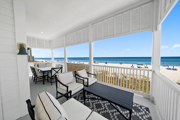 Multiple covered balconies overlooking the beach and Carillon village