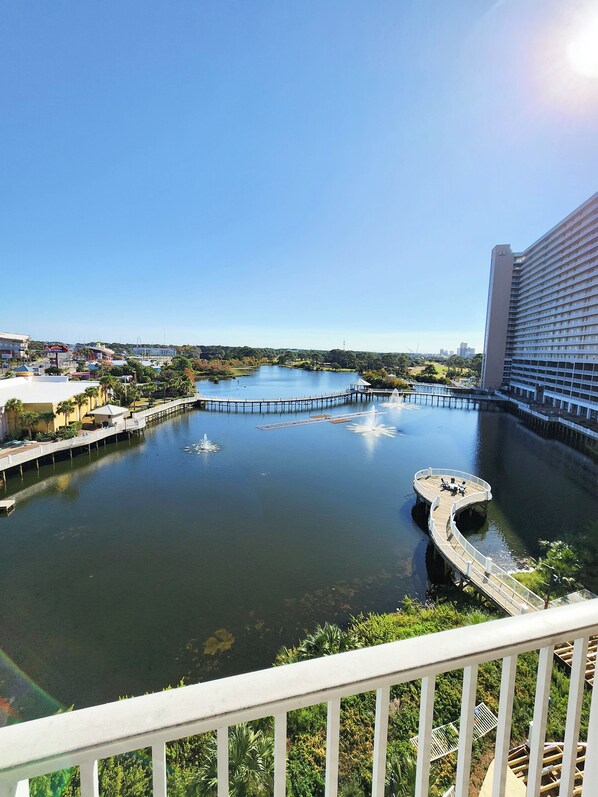 Phenomenal setting offering panoramic views you cannot find anywhere else, heated pools, kiddie pools. Vegas style fountain show every night, you can enjoy from the privacy of your own balcony!
