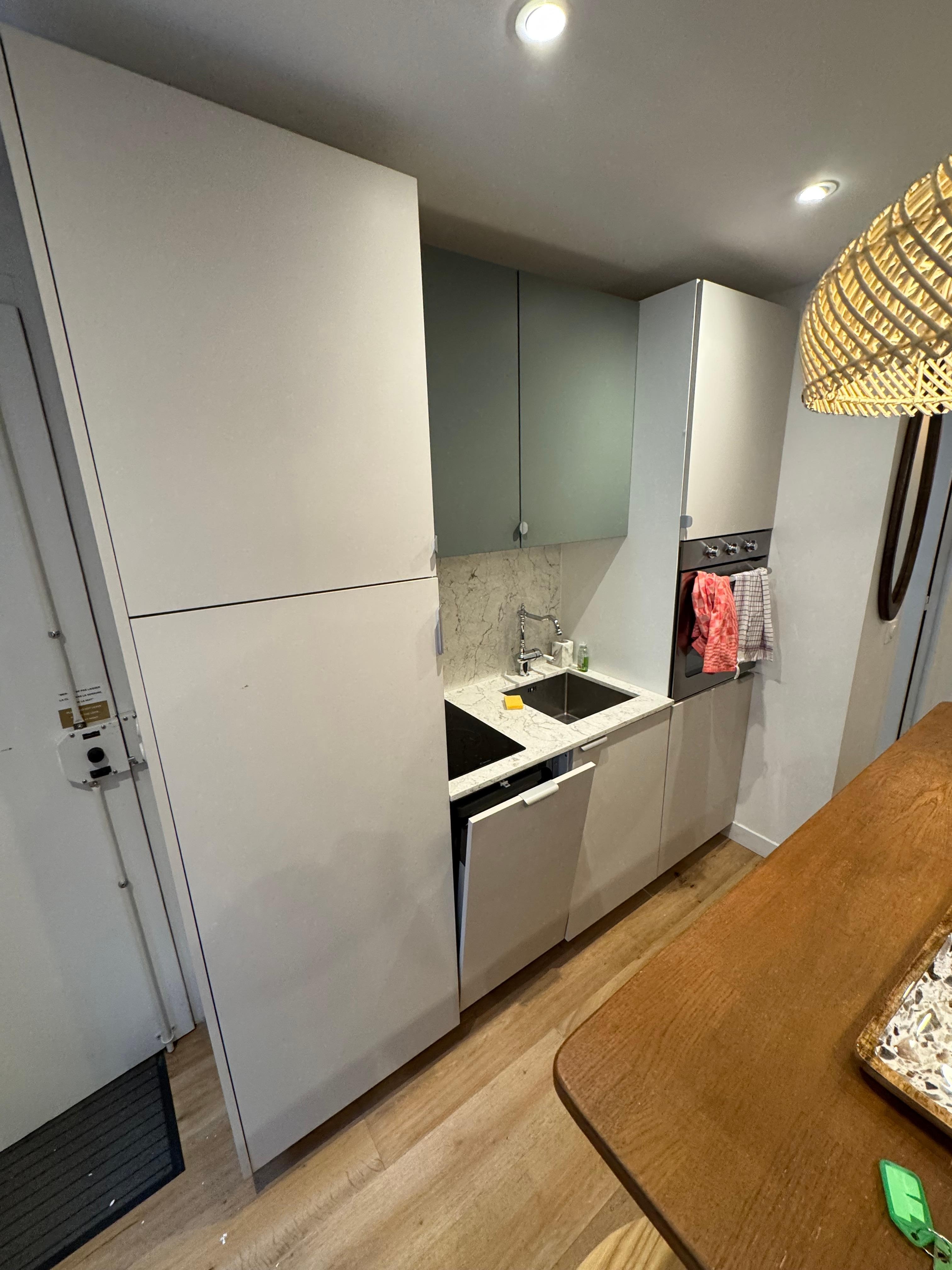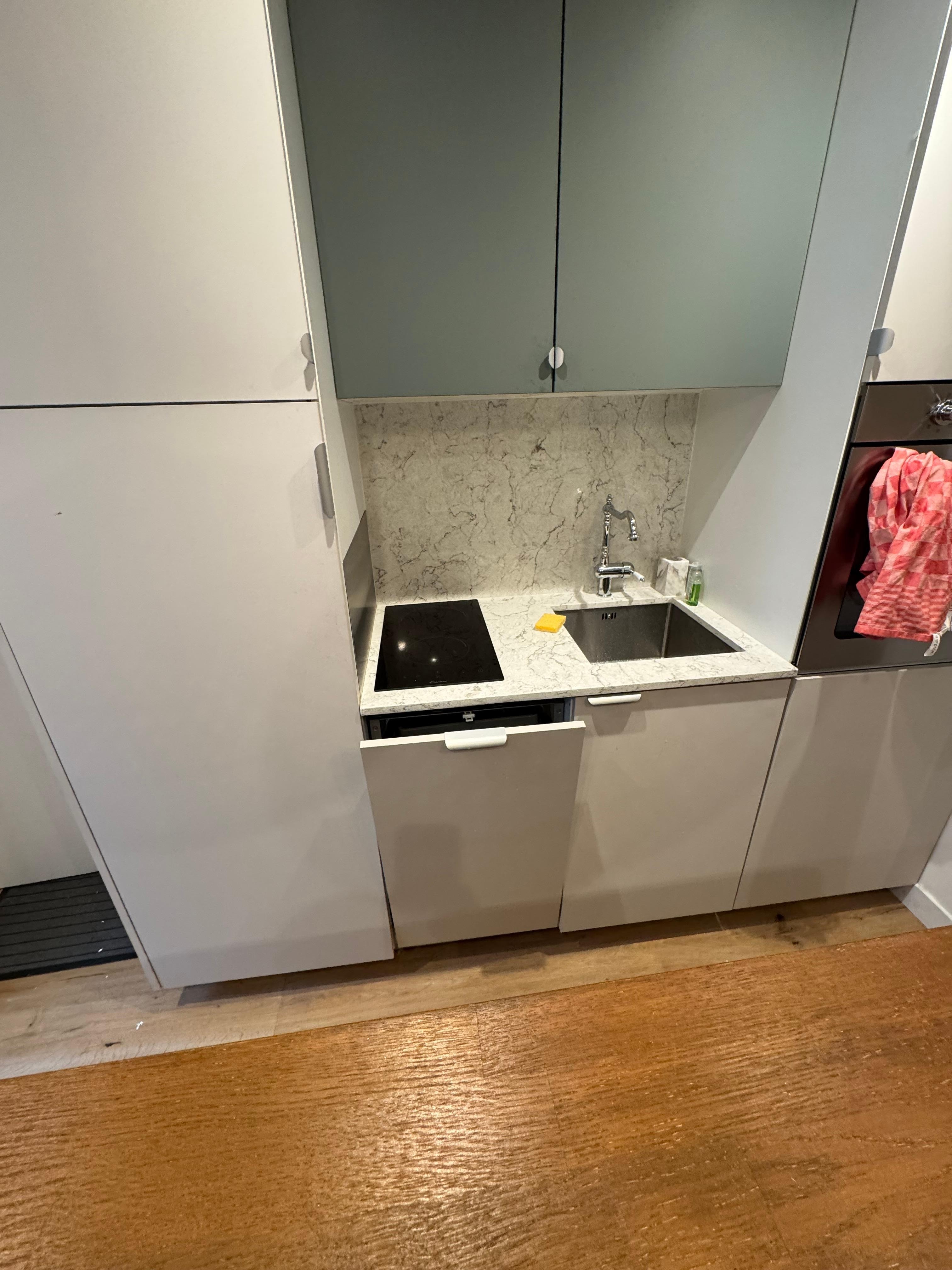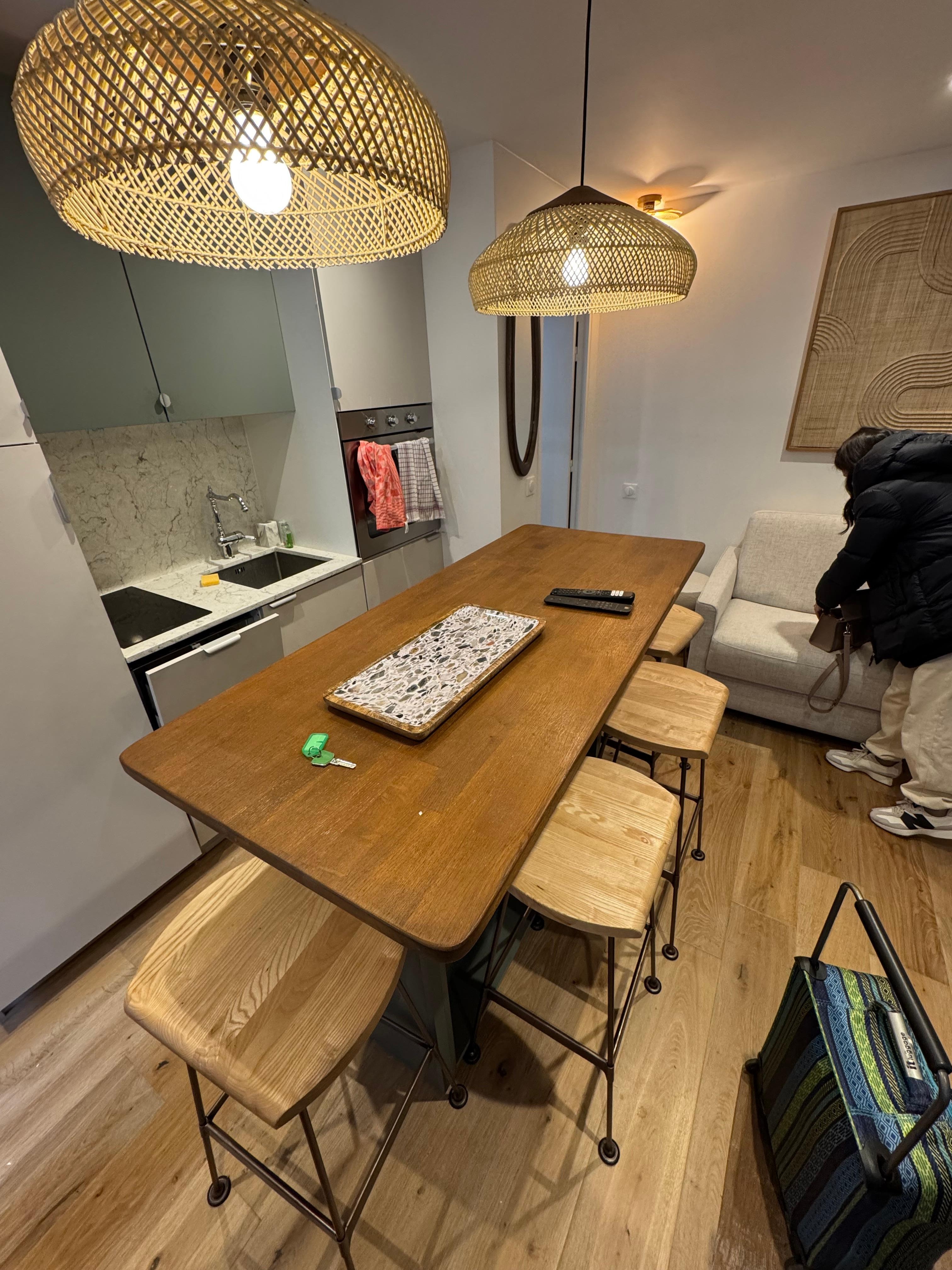 • Fully equipped open kitchen, with microwave, washing machine, dishwasher, fridge, hotplates, kettle, coffee maker, teapot, and everything you need for cooking.