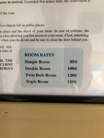 - Der pålægges en byskat: 13.00 EUR pr. person pr. nat. Denne skat gælder ikke for børn under 18 år.
