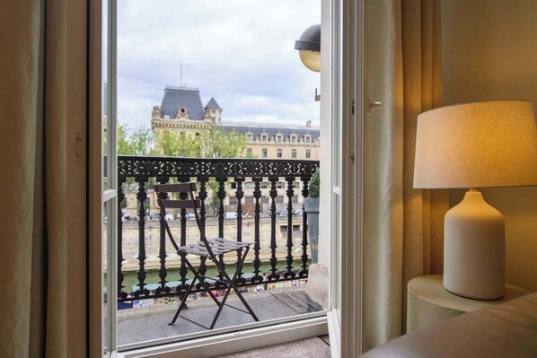 Soveværelset vender ud mod en stille gårdhave for en rolig og fredelig atmosfære, et pusterum fra byens lyde. Opholdsområdet vender ud mod floden og Paris-øen ILE DE LA CITE, som tillader masser af lys og frisk luft.