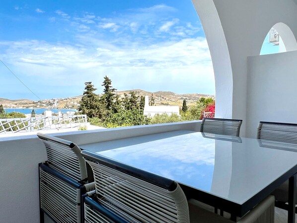 Aeolian blu is a unique combination of Cycladic design & architecture married with a touch of an Ethnic theme overlooking the Aegean sea & the picturesque Paroikia bay & town.