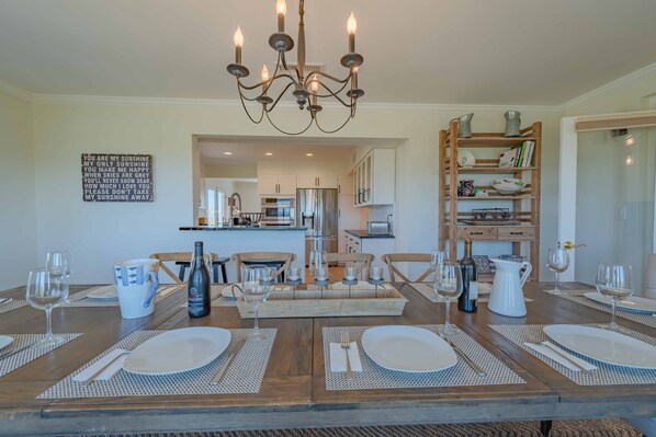 We provide personal amenities including soap, shampoo, conditioner and body lotion, paper products, kitchen necessities such as dish soap and trash bags. There are plenty of linens and bath towels. Laundry facilities and detergent are in both laundry areas. The kitchen is also stocked with the essential stapes: olive oil, vinegar, salt, pepper and spices. There is dinner service for 12 as well as plenty of cooking, baking and serving necessities.