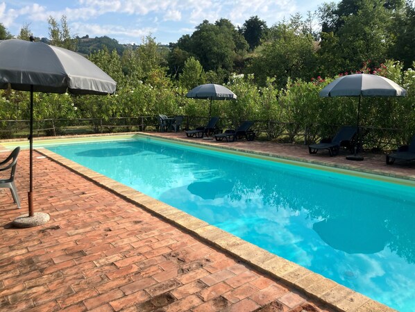 This is a fantastic, huge farmhouse in a very peaceful area surrounded by beautiful countryside. The swimming pool is huge and it was amazing to swim and spend lazy days around. Check in and communication throughout our stay was excellent. The farmhouse and pool were spotlessly clean, and the kitchen and barbecue area allowed us to cook and eat easily.It's a 5-minute drive up to the small town of Penna San Giovanni which has everything you need - a restaurant, bar, supermarket etc. It's a beautiful village; everyone was incredibly friendly and keen to help. It's an amazing place to stay and unwind, waking up to the birds singing in the morning. I can definitely, highly recommend staying here.10/10. Thank you