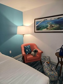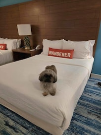 Ja, Compass Hotel by Margaritaville tillader hunde (maks. 2 i alt) med en maksimumvægt på 34 kg pr. kæledyr. Der er et gebyr på 100 USD pr. kæledyr pr. ophold. Servicedyr er fritaget fra gebyrer.
