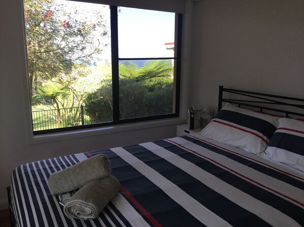 Uden for enheden findes der en gasgrill med bord og udendørs møbler, der fører til en velplejet indfødt have med udsigt over havet. En udendørs bruser er placeret uden for enhed 2 med det formål at fjerne sand efter at have været på stranden.