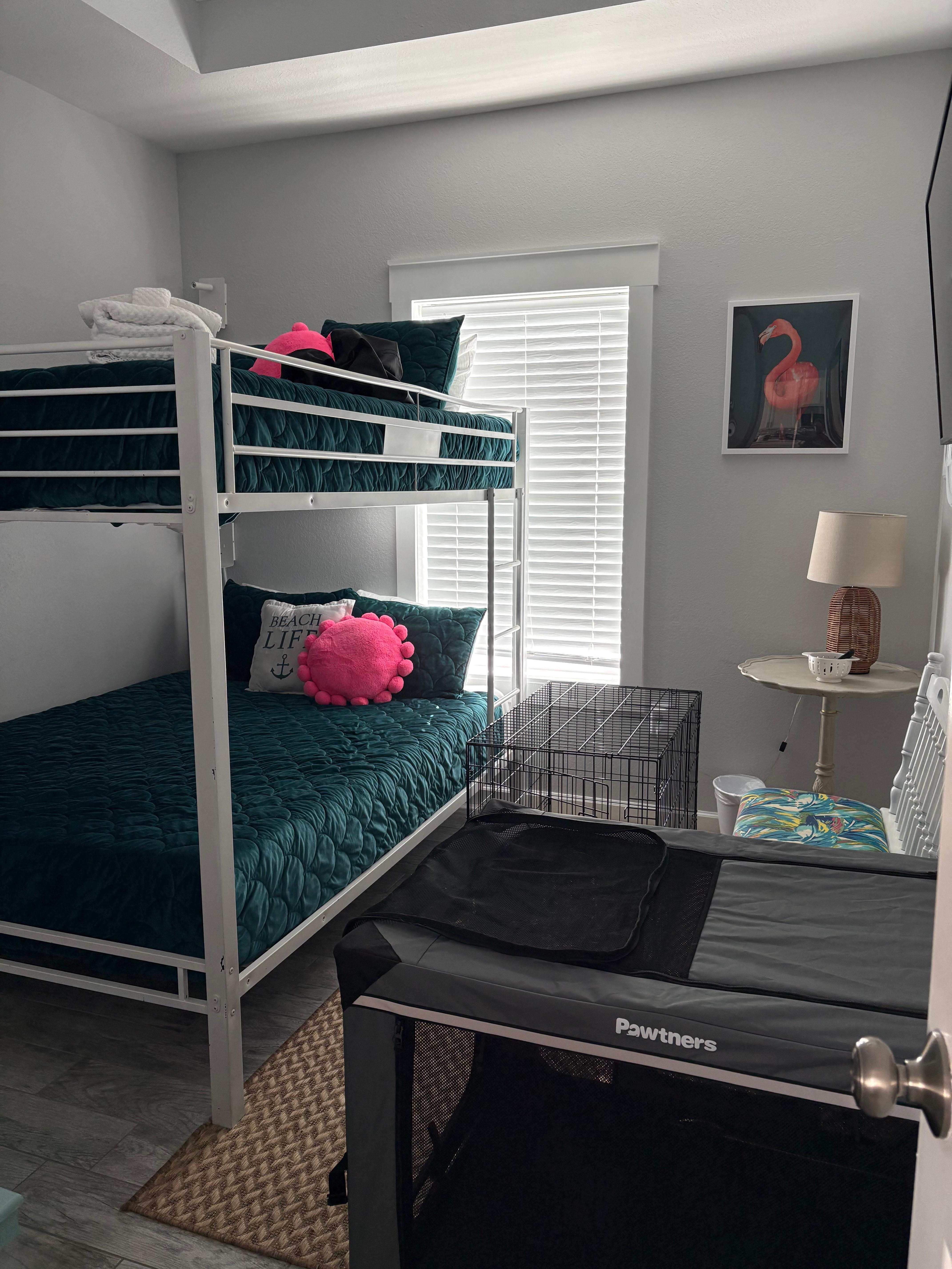 Property Description: As you enter Georgia Sand you'll be greeted with an open concept living/dining kitchen area with tile flooring throughout. The living area features a 58” smart tv and a queen sofa bed. The master suite features a king bed, smart tv, and the master bathroom features a custom tile shower with glass doors. The guest bedroom has a queen over queen bunk bed and a smart tv. The guest bathroom has a tub/shower combo with glass doors. A washer and dryer is available to use during your stay.
