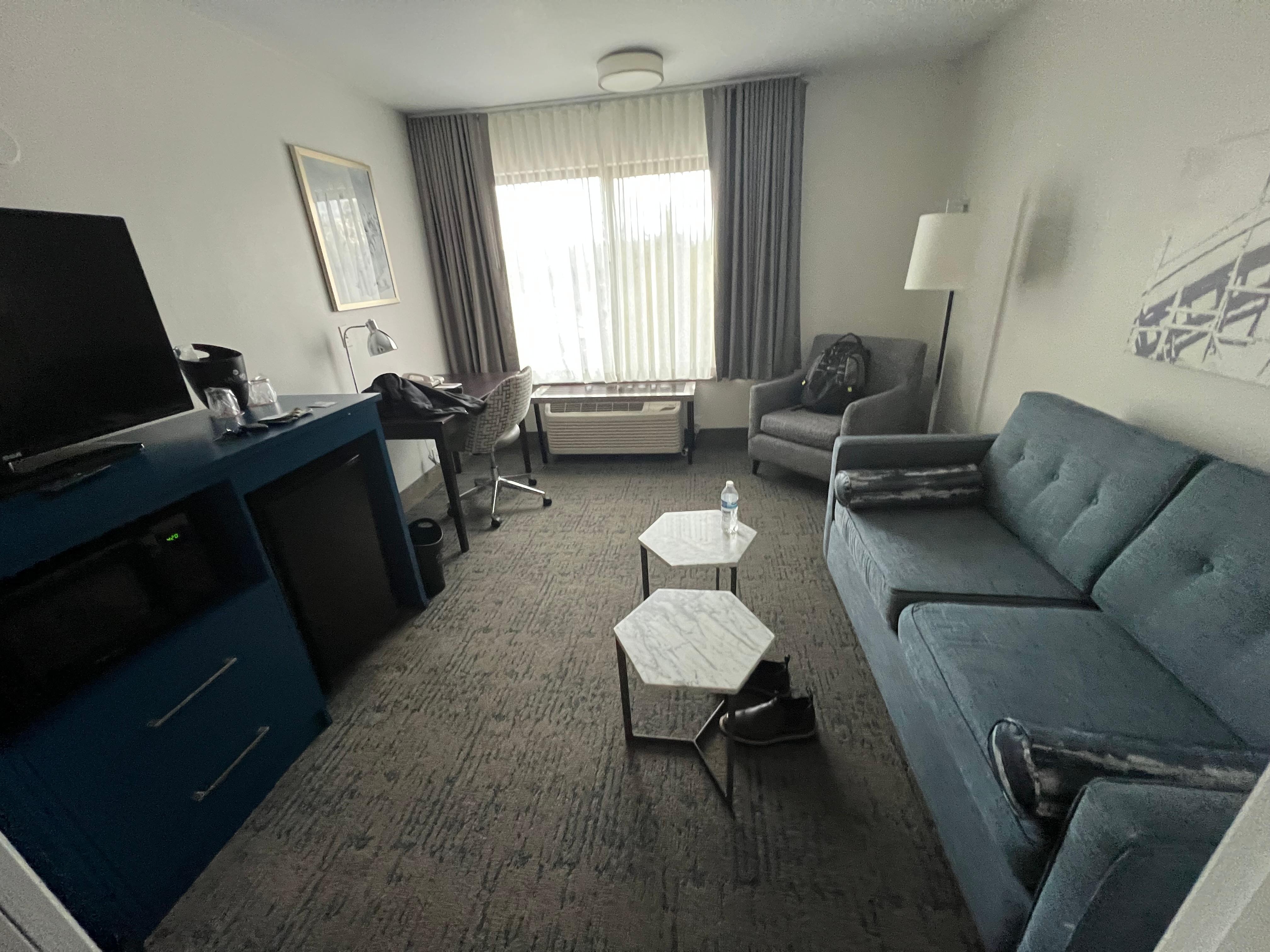 The hotel is in a convenient location just off I-5. The room was clean and comfortable. The check in process was absolutely terrible. There was no one at the front desk when I arrived. There were multiple other people waiting to check in too. I asked nearby staff if they could send someone up to the front desk and after waiting quite a long time a girl came to the desk and made excuses for not being up front. They should really just have a self check in kiosk if they don’t want to keep someone at the front desk. No one wants to wait around to get in to their room after a day of traveling.
