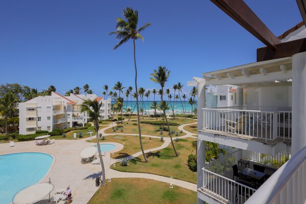 Gated community med 24/7 sikkerhed. Alt er helt nyt! 2 store puljer, en med en swim-up bar, et med en børnepool. Elevatorer, receptionområde, Wifi, kabel, fladskærms-tv. Ideelt beliggende langs El Cortecito striben i hjertet af Punta Cana (Bavaro), inden for kort gåafstand til alt; internet cafe, restauranter, købmandsforretninger, apotek, pengeveksling, pengeautomat, bageri, casino, fitnesscenter og spa. Inden for 5 minutters kørsel til Palma Real Shopping Village. 10 golfbaner inden for 5 til 30 minutters kørsel.