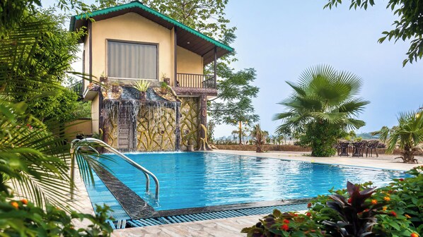 Resort med en døgnåben reception og en udendørs pool i Ramnagar