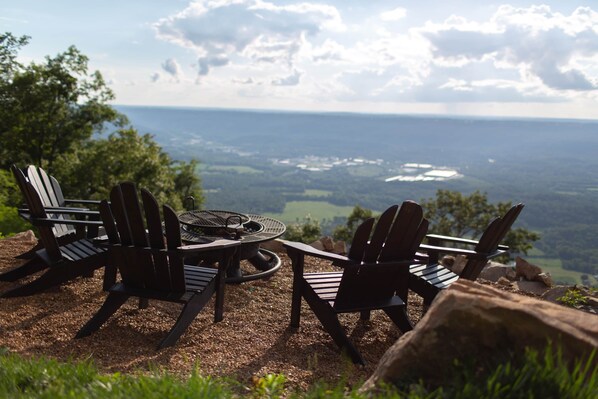 Great view and cozy little cabin.