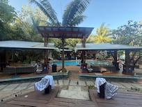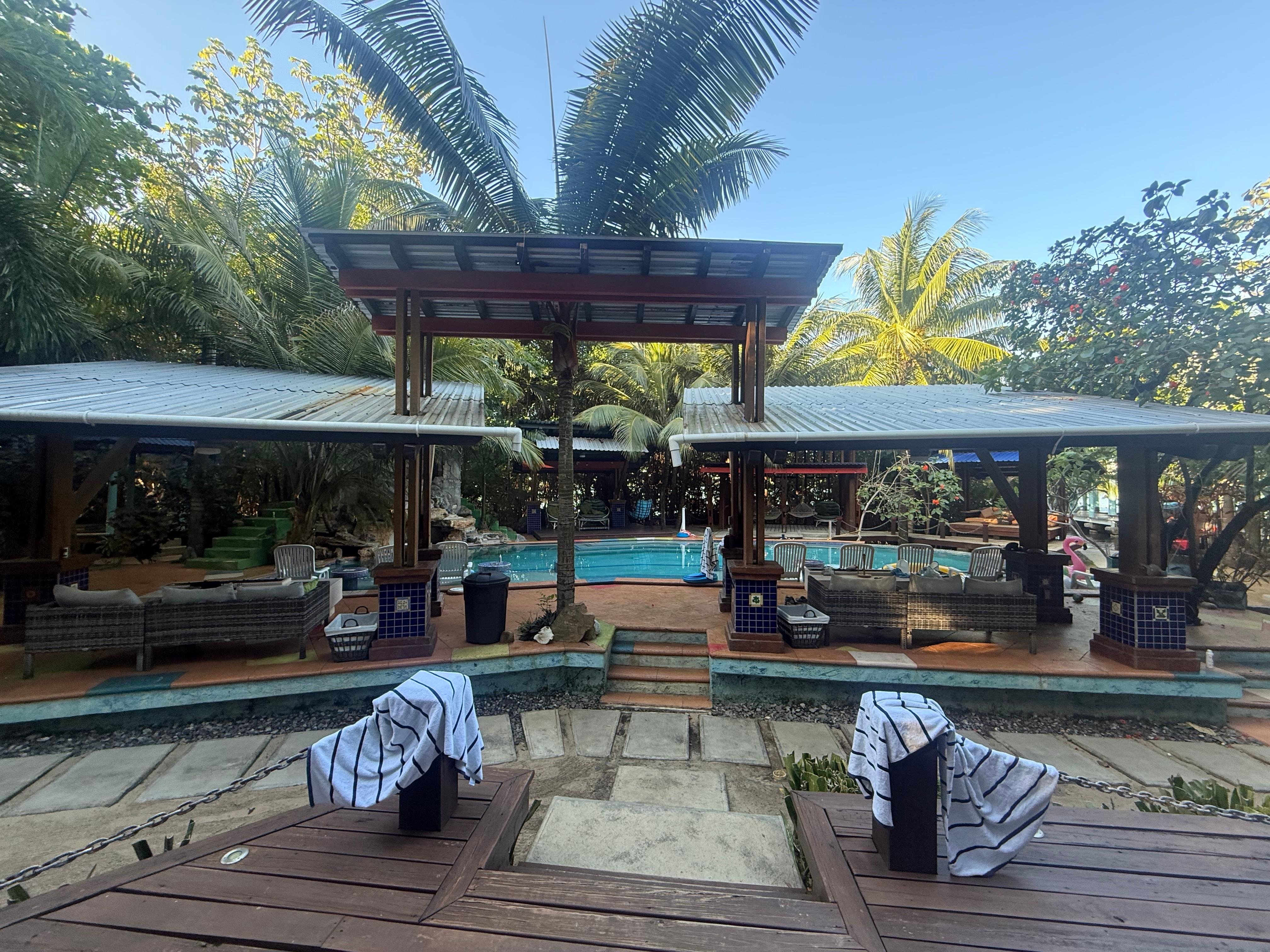 Our stay at The Dock Resort was truly a "once-in-a-lifetime" experience. Tucked away in a private cove, the property feels like a lush jungle fairytale, yet it is just a 3-minute water taxi ride from the lively nightlife and restaurants of West End.The onsite team, led by Brah, is the heart of the resort. Having private chefs like Gizelle and Dillcia prepare three fresh meals and daily poolside snacks (like nachos, wings and fried plantains) made it a true vacation where we didn't have to lift a fingers. The 55ft pool and three-story dock are the centerpieces of the resort. We spent most of our time between the pool, the hot tub, and the giant over-water dock, which is perfect for watching sunsets. The resort provides complimentary kayaks, paddleboards, and snorkeling gear. A major perk is the free barge boat rides out with Brah to the nearby reef for snorkeling. AND onsite massages (35/hour) with Giselle and the light show performed on the property. It is a beautifully rustic tropical compound. While the grounds are impeccably kept but remember you are in the jungle, so bring repellent. We also enjoyed nightly games of billiards.