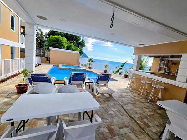 Here at VIP Residence Dominica, we are known for the breathtaking views of the ocean, great customer service, and a very safe, secure and peaceful environment which is ideal for individuals, couples or groups here on business or vacation. This specific apartment has Mountain Views but you can enjoy the ocean views once you are outside by the Pool area.