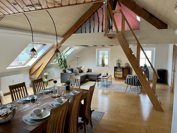 The apartment is huge -- it is two full floors. The amount of space we had for our party of 4 was almost ridiculous. It is also comfortable and well-appointed. We stayed in Saarburg as a convenient place to visit Luxembourg and Trier, so it was a pleasant surprise how much we enjoyed Saarburg itself. This rental was a highlight of our trip. Our host was kind, communicative, and hospitable.
