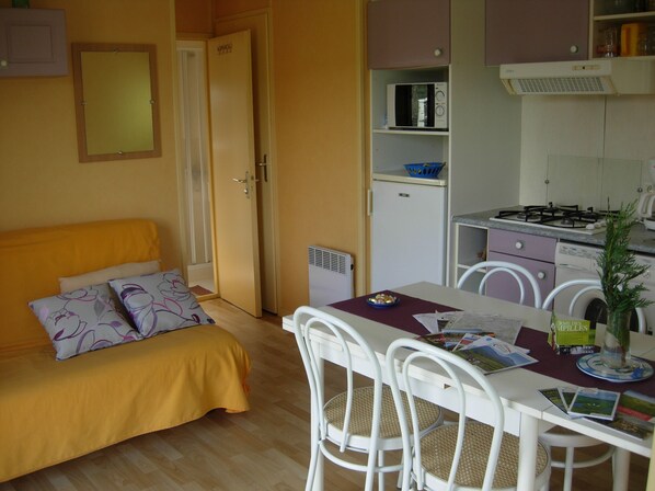 Par contre le gîte n'était pas de ce que l'on peut attendre d'une jolie location confortable : Il serait nécessaire d'avoir en plus une étagère dans la s de b sous la petite fenêtre , il serait agréable d'avoir un grille pain dans la kitchenette .