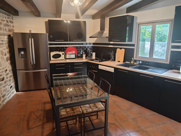 The Gîte du Mas de Palaille accommodates up to 8 guests in high season (May 1 to September 30) and 6 guests from October 1 to April 30, as one bedroom in the dovecote is unheated.