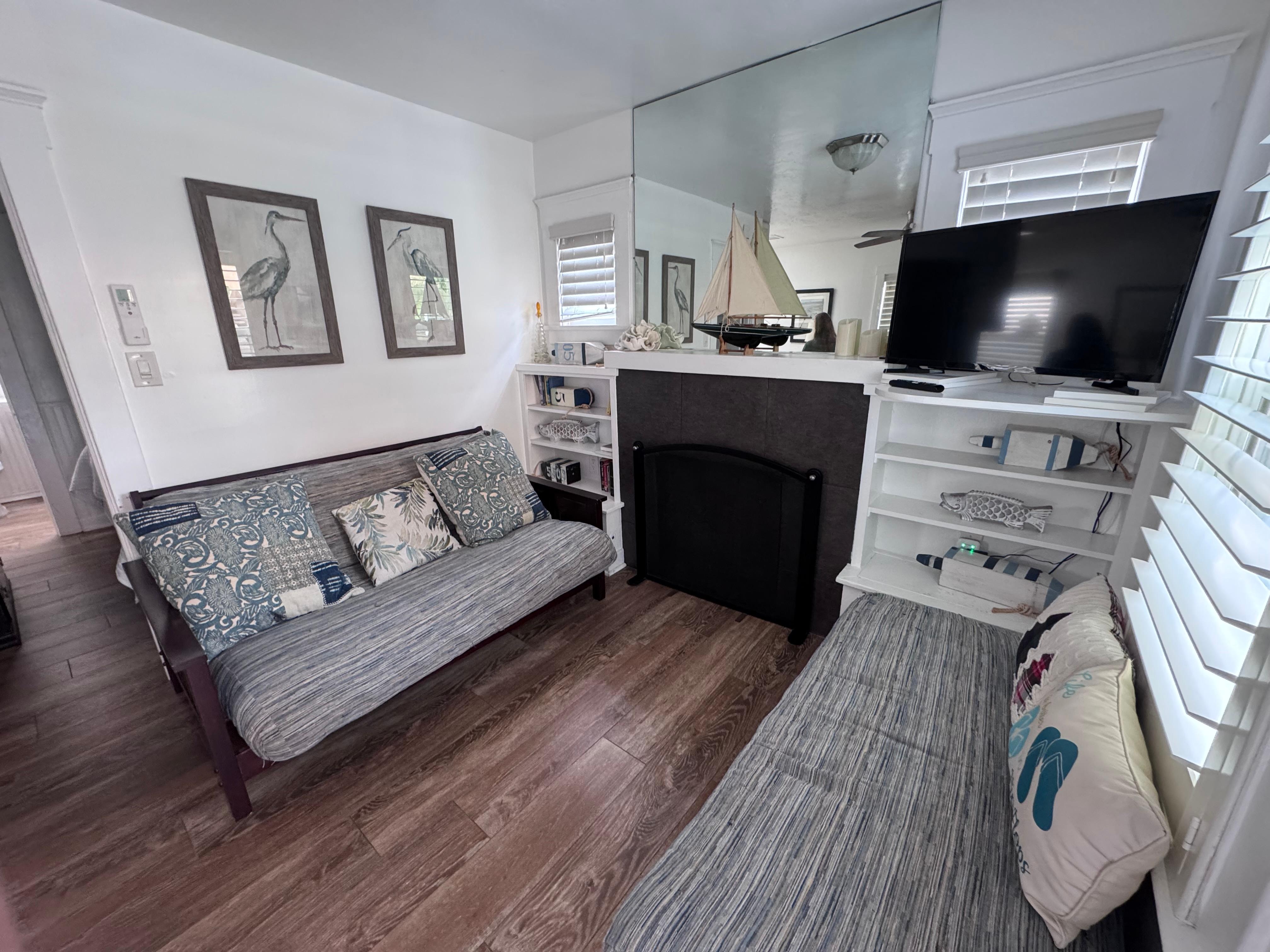 East check-in and cozy bungalow. Able to walk all over on bay and beach side!