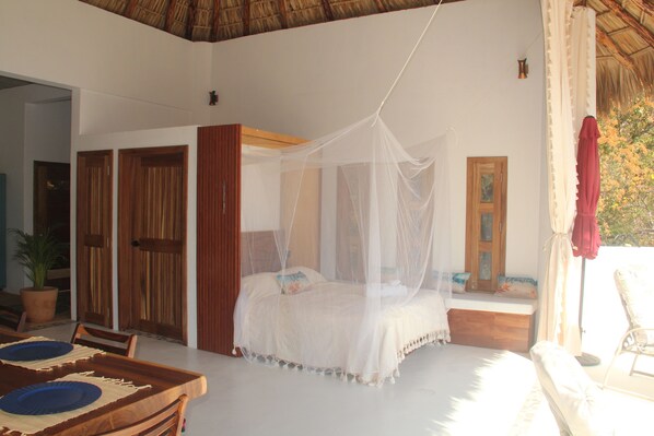 Casa Milagro sits within a natural dry forest, which means you’re truly immersed in nature. You are a guest in her world, with a front-row view of the local ecosystem. You may encounter insects and wildlife—this is part of the experience. We provide mosquito nets and recommend using them at night. If you’re sensitive to mosquitoes, please bring your preferred repellent for extra comfort.