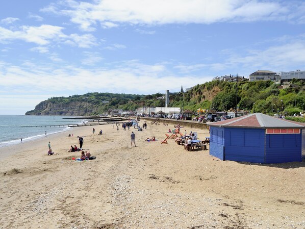 Kun 3 miles fra sandstranden ved Sandown, kan dette meget komfortable enkelt-etagers sommerhus prale af en vidunderlig panoramaudsigt over det omkringliggende landskab. Tilgrænsende ejerne hjem med dejlig gåtur fra døren, det er en ideel base for at udforske de mange steder af interesse på denne smukke ø. Bembridge, dens naturlige havn bugget med lystbåde og husbåde, Brading Roman Villa, Carisbrooke Castle og Osborne House - sommerhuset designet af prins Albert for dronning Victoria i 1840'erne - er alle et besøg værd, ligesom øens dampbane, den zoo og travle sejlsportscentret Cowes. Ridning og golf i nærheden. Shop og pub 0. 5 miles.