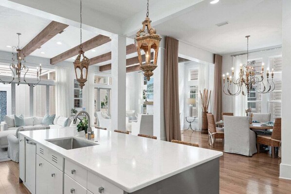 -Fully equipped high-end chef's kitchen with top-of-the-line appliances, and eat-in breakfast bar on the massive island
