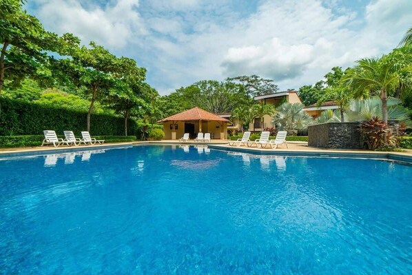 The Vista Ocotal development is a growing development that has a beautiful large pool, gathering area, and gardens.