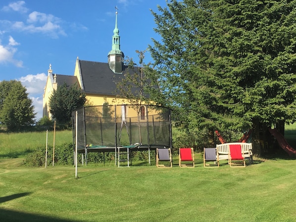 The common room (with a play area, a projector with a screen, plenty of space for up to 30 people for celebrations, access to a large terrace) and the play garden offer the opportunity to come into contact with other families and guests.