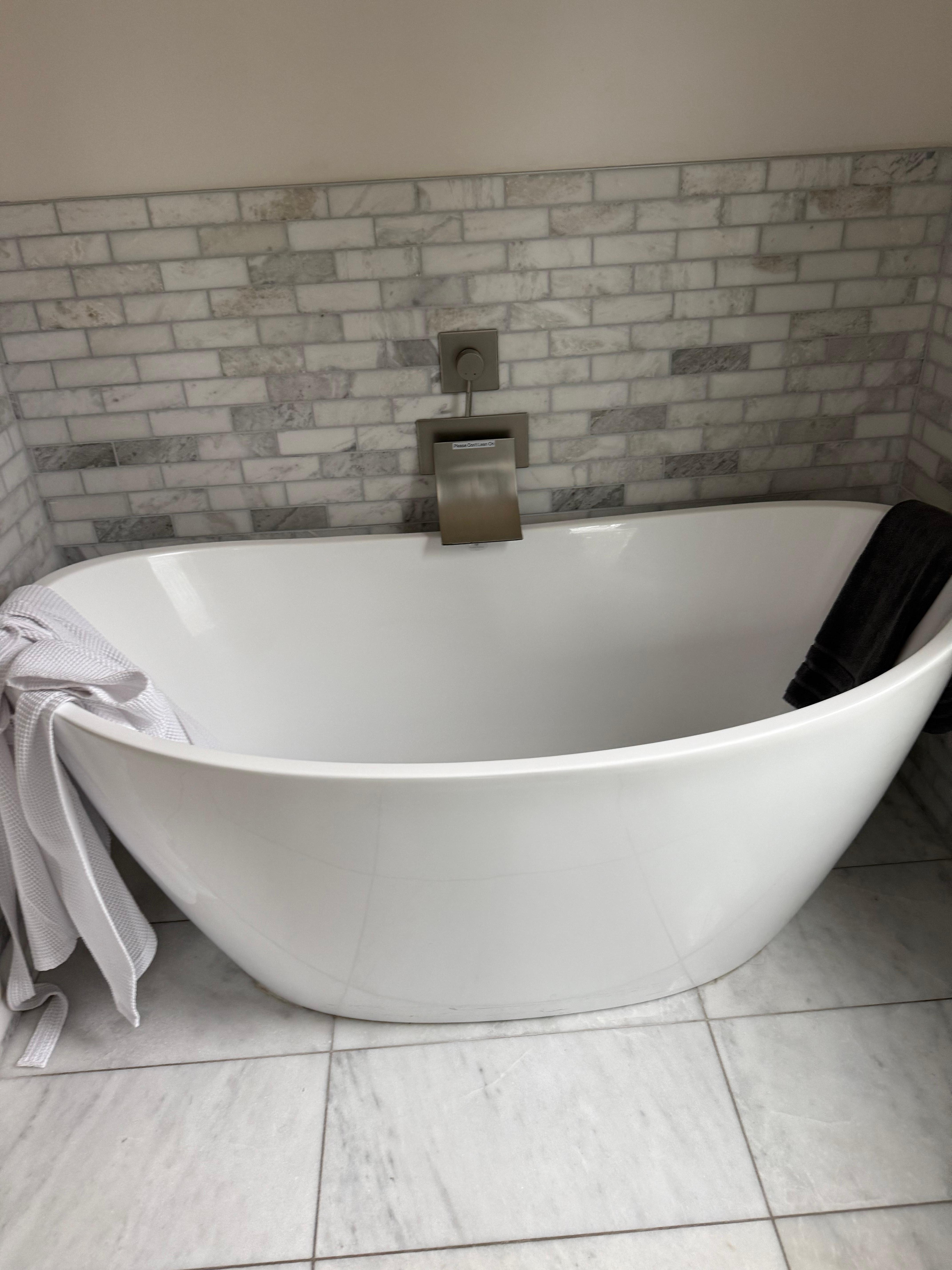 Master Bedroom - King size seng med nye, organiske (ikke-giftige) madrasser og sengetøj, Smart TV og adgang til dæk. Det private badeværelse tilbyder et frit frit badekar, separat bruser og dobbelt håndvask med smuk marmorfliser.