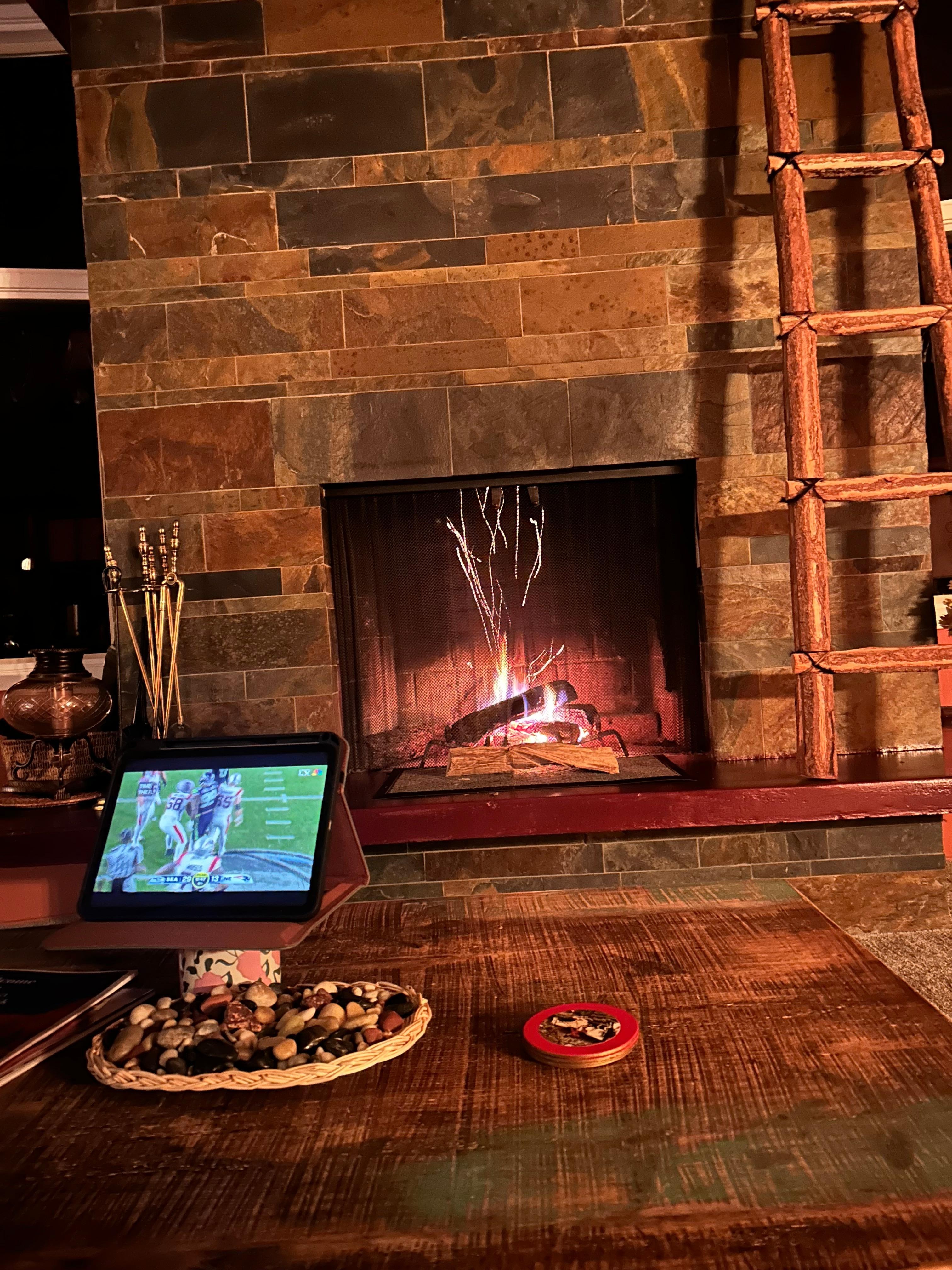 Placer dit foretrukne duftlys i vores GIANT pejs med brugerdefineret skifer skorsten for ekstra romantisk glød, eller når du besøger om vinteren og efteråret, lys dine dage med den rigelige brænde, der altid er gratis.