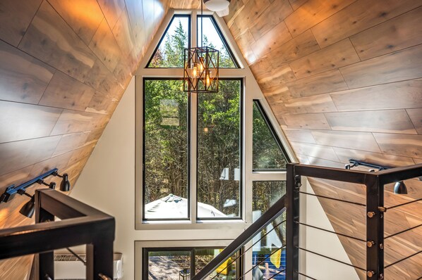 Featuring a 1-bedroom loft with a king-size memory foam mattress, Smart TV, and cozy reading nook. Downstairs, enjoy a queen-size sleeper sofa paired with a 55-inch Smart TV. The full kitchen includes a Haier refrigerator, Kline microwave/convection oven combo, dishwasher, glass cooktop, Keurig, fully equipped utensils, stacked GE washer/dryer, built-in Bluetooth speaker, and a luxurious heated glass walk-in shower. To help you settle in, we provide the following essentials: K-cups Salt & pepper Dishwasher tabs Dish soap Hand soap Small sponge Trash bags Laundry pods Fabric softener sheets Paper towels Toilet paper Unlimited cedar fire pit wood Fire starter brick for the fire pit Lighter or torch 2 fishing poles Fishing line, lures, and a bait box with assorted bait 2 OSFM life jackets 2 child-size life jackets Access to kayaks Access to pedal boat 2 roasting/toasting sticks Horseshoe set Cornhole game Personal fire pit Personal park-style grill Grill utensils Grill brush