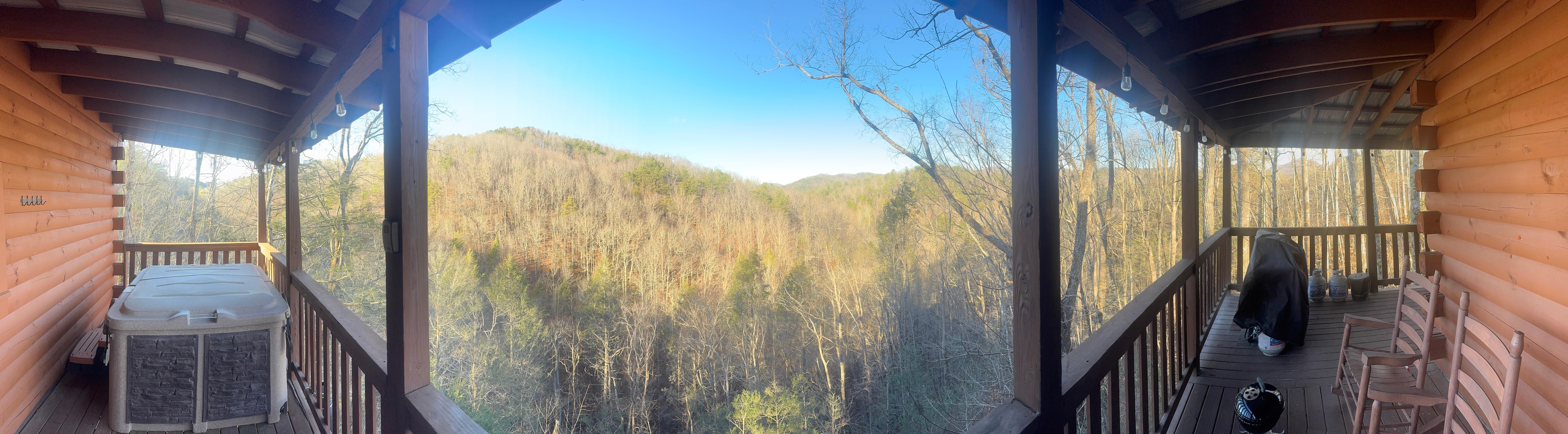 The cabin was nice and relaxing! The porch with a view, was our absolute favorite place to be! We did have a very bad storm causing a hours with no power, and unable to travel due to roads. The overall stay was a pleasant one.