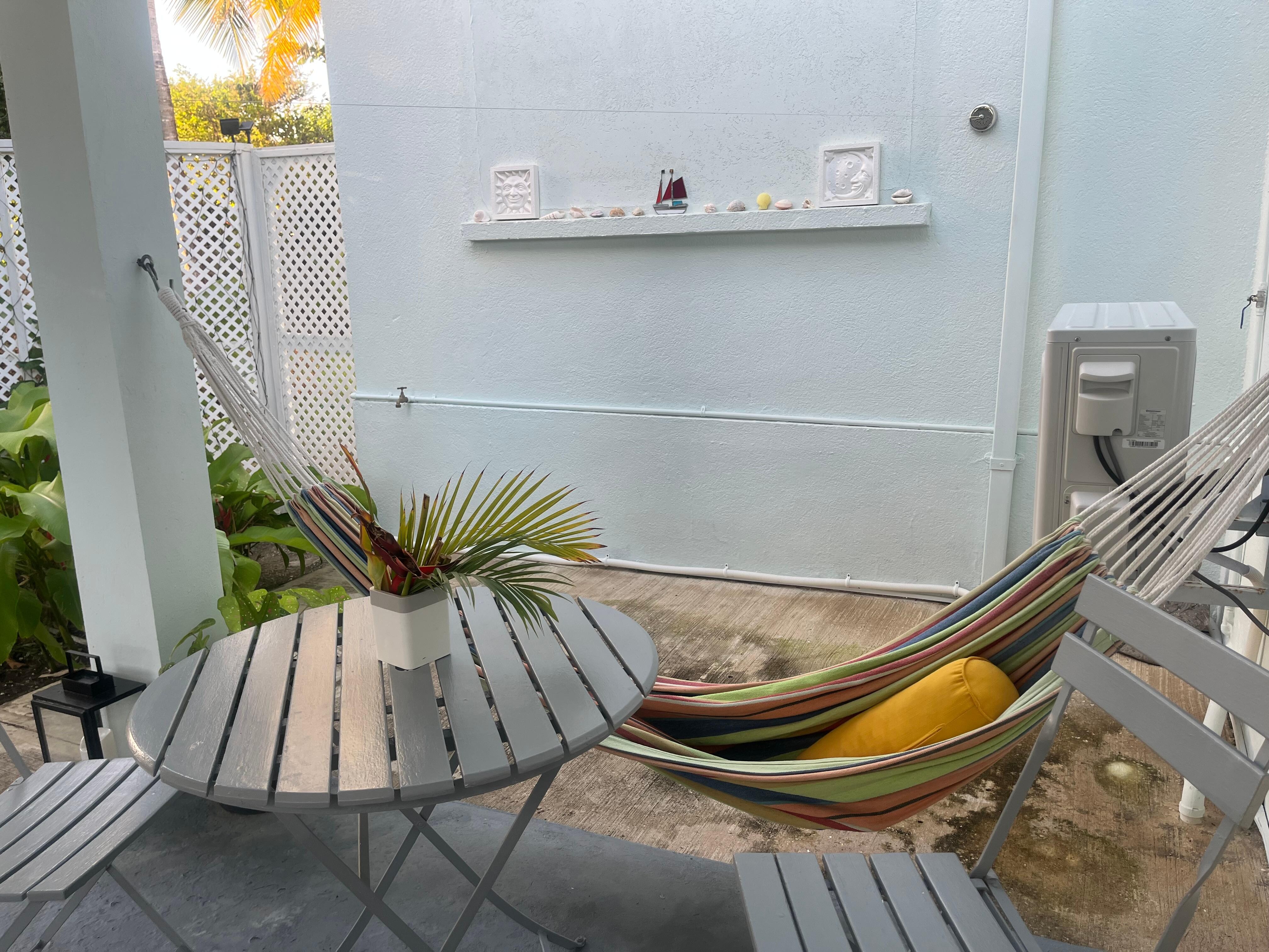 Private patio and your own private garden with hammock and sun-beds to relax or just top up your tan.