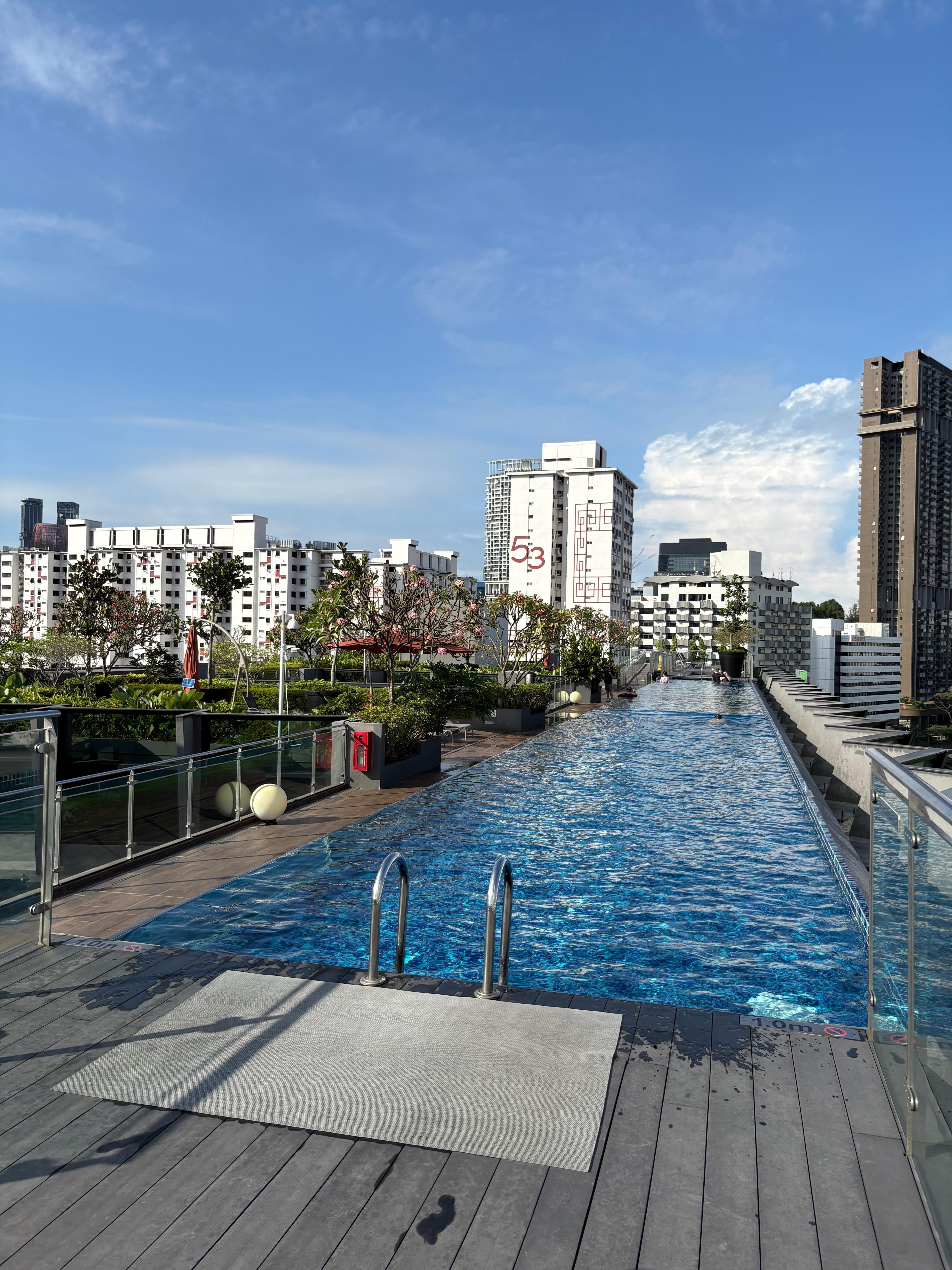 Very clean room , comfortable bed . Pleasant roof terrace garden and pool with great views over the city . Hotel within walking distance of Clarke Quay.