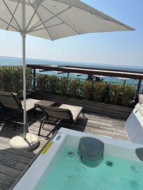 Room with hot tub on outdoor patio is great