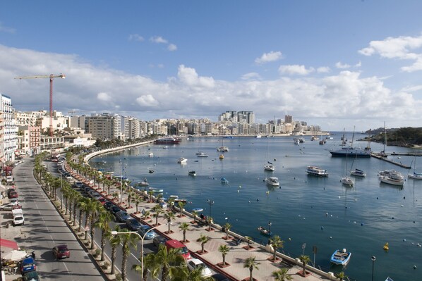 Beliggende kun 30 meter fra Sliema-promenaden, trendy restauranter og pubber. Billederne er ikke udsigt fra lejligheden, men billeder af promenaden tættest på lejligheden, hvorfra man kunne fange færgen til Valletta og finde busterminalen.