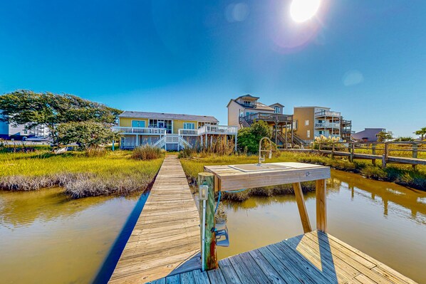 Light-filled coastal stay with open layout, water views, washer/dryer, and AC