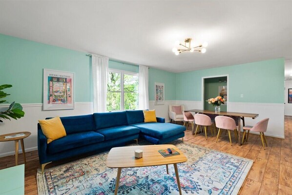 We had 2 married couples, 2 babies and a dog on this 3 day trip. The house was perfect for accommodating us. Bright, vibrant and plenty of space. It was clean and as pictured on VRBO.