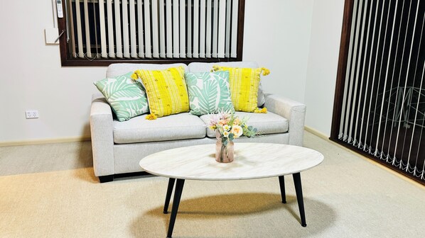 * Comfortable sofa and coffee table