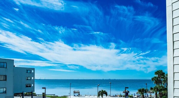 Waterfront condo with gorgeous views of the breathtakingly blue, crystal waters of Tampa Bay, this fourth floor 1 BR/ 1 BA suite provides you with an escape to a Tropical Serenity. With one queen sized bed in the bedroom, as well as a queen-sized sofa bed in the living room, the suite can accommodate 4 guests, featuring a full kitchen and full bath. Both cable and internet are provided. As you begin your adventures every morning, guests can enjoy sipping coffee from our complimentary coffee station while taking in the phenomenal views of the bay on the balcony or from inside. This incredible oasis can be all yours.
