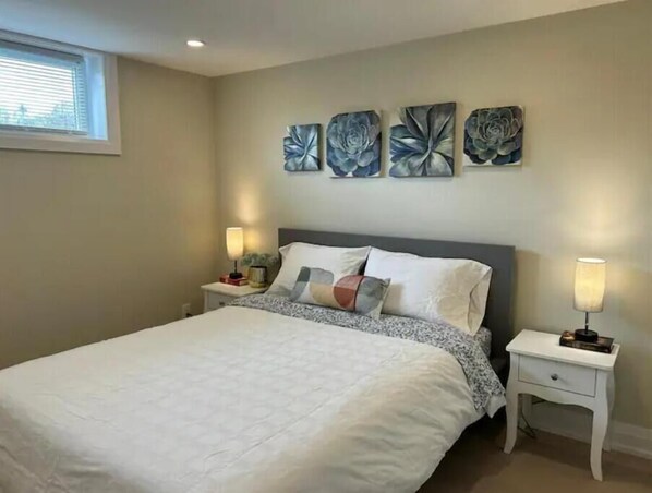 Nestled in the charming neighborhood of LakeView, our newly renovated Airbnb offers a perfect retreat with a touch of elegance. Indulge in culinary delights at nearby top-rated restaurants, or whip up your own creations in the fully equipped kitchen featuring brand new appliances and utensils. With two spacious bedrooms boasting plush queen-sized beds, a dedicated work area, and a stylishly appointed living room, comfort and functionality harmonize seamlessly. Unwind after a day of exploring in the full bath and shower, and take advantage of the convenience of in-unit laundry facilities. Just a 15-minute drive from YYZ airport, your effortless getaway begins here.