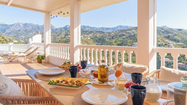 Poolen er iskold Der er desværre dårlig kommunikation med Lucia som skal vise huset frem- hun taler udelukkende spansk - så man har ikke mulighed for nogle spørgsmål overhovedet.Man skal være opmærksom på at der bliver afregnet ekstra for strøm, det står ikke beskrevet nogen steder.Huset fremstår meget sparsomt indrettet, der mangler bestemt sjæl.Huset er til 4 personer, der er kun 2 liggestole ved poolen.På tagterrassen med den skøn udsigt, er der ingen møbler, den er simpelthen tom.På afrejsedagen , fik vi en besked om at de ville komme 1,5 time før aflevering af huset for at de kunne nå at gøre rent til næste lejer .Det er desværre ikke gode anbefalinger her fra os .Beliggenhed er skøn.