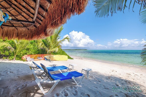 Escape to Casa Los Tulipanes, a colorful beachfront villa on peaceful Soliman Bay. Designed for comfort and connection, this 4-bedroom, 4.5-bath vacation rental offers direct beach access, a private oceanfront pool, and rooftop views of the Caribbean Sea. The home’s bright interiors and vibrant decor echo its relaxed Mexican-Caribbean spirit.