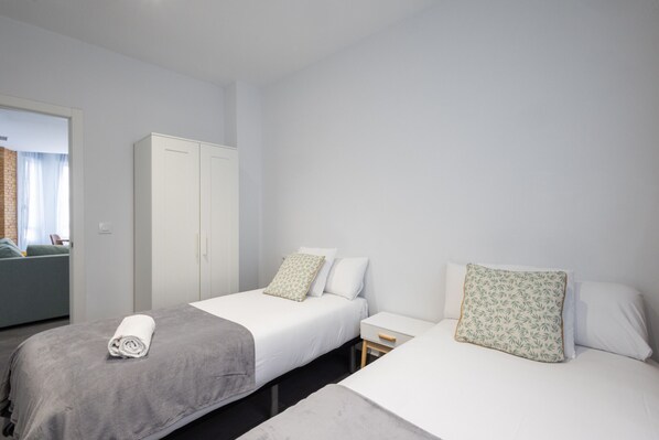 You'll find three bedrooms: two with two single beds each and one with a king-size double bed—perfect for recharging after a day of exploring the streets and beaches of Valencia.