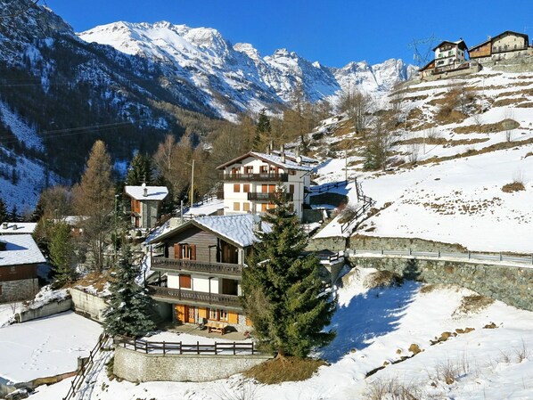 Hyggeligt hytte "Coup d'Coeur", 1'600 meter over havets overflade. 3 lejligheder i ejendommen. Ovenfor Valtournenche, 400 m fra bymidten af Valtournenche, 8.5 km fra centrum af Breuil Cervinia, 18 km fra bymidten af Chatillon/Saint Vincent, solrige beliggenhed ved bakke, 800 m fra skiområdet. I huset: reception, skirum, vaskemaskine (til medbenyttelse, ekstra), skistøvletørrer. Supermarked, restaurant 300 m, busstoppested "Valtournenche" 400 m, banegård "Chatillon" 18 km, svømmehal 800 m. Golfbane (18 hul) 8.5 km, skilift, kabinesvæbebane, skipiste 800 m, skibusstoppested 400 m, skiskole 800 m.