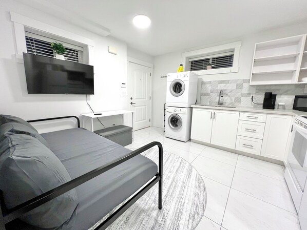 1 Bedroom with WIFI, Laundry, Queen Bed, Sofa Bed. Close to Transit and Grocery