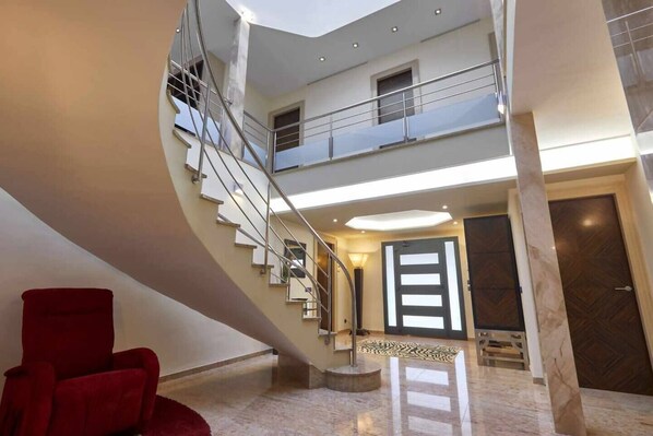 Inde i boligen finder du forskellige områder og forskellige miljøer, såsom inde i værelserne med kromterapi, smart-tv forbundet til internettet, det fuldt udstyrede køkken, komplet vaskeri, smukt køkken og en rummelig stue, til at slappe af og rense for kroppen er der spa- og saunaområdet, alt sammen placeret inde i boligen.