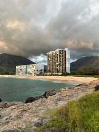 We are at the airport flying back to Canada but we had a wonderful one week stay at the Hawaiian Princess penthouse apartment. The views are spectacular as is the beach. We picked up groceries at a Safeway before heading to our condo and we enjoyed having our breakfasts on the lanai and tried to get back for sunset most nights. Though we were here for the Kona low # 3 and had a day of wind/cloud and one day of heavy rain the other days were awesome. The beach and ocean were great for swimming. We toured the whole island with day trips - though got stuck in 2 hour hour rush hour traffic on the day we went to Waikiki. Beach house 604 was great for nearby dinner but we cooked at the condo a lot too. The kitchen was well stocked and the bed was so comfy. I had a conference at the Disney resort for 2 days and this was just 25 mins away. I can highly recommend this place if you’re looking for stunning views, more room than a hotel and an amazing beach. Mahalo!