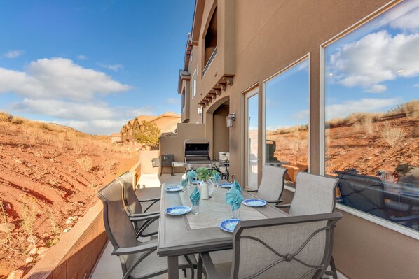 Forestil dig at sidde ude på balkonen og varme op til vores sydlige Utah-sol og nippe til en varm kop kaffe, mens du har udsigt over det bjergrige terræn på Coral Canyon Golf Course; lyder ideelt, ikke? Hidden Canyon kan gøre det til en realitet!