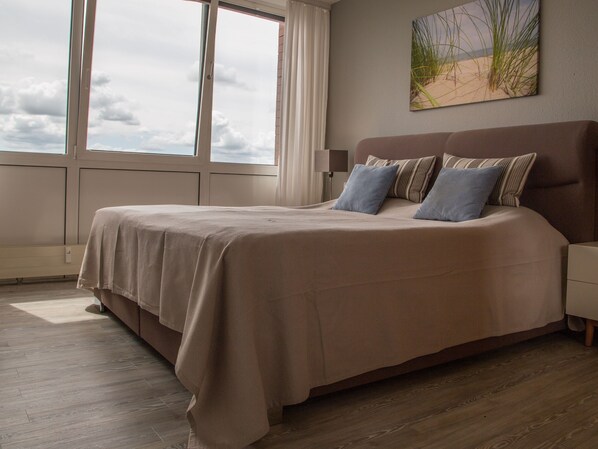 Lejligheden på 80 kvm er designet til højst 3 personer. Det har et stort, åbent opholds- og madlavningsområde, to soveværelser, et badeværelse og en gang. Køkkenet er omfattende udstyret. Om en Nespresso-kaffemaskine, en mikrobølgeovn, en kedel, den keramiske kogeplade med ovn til køleskabet med fryserum er alt tilgængeligt. Et moderne tv, en DVD / BlueRay-afspiller inviterer dig til at blive hængende på sofaen. Soveværelset har en stor kasse forårsseng og tv, det andet soveværelse er udstyret med en behagelig sovesofa. Vi tilbyder gæster gratis trådløs internetadgang. Bemærk venligst, at lejligheden er en ikke-ryger lejlighed. Rygning er derfor ikke tilladt inde i lejligheden!Vaskemaskiner og tørretumblere er placeret i det moderne vaskerum i Helgolandhaus og kan serveres med mønter (fås hos viceværten).